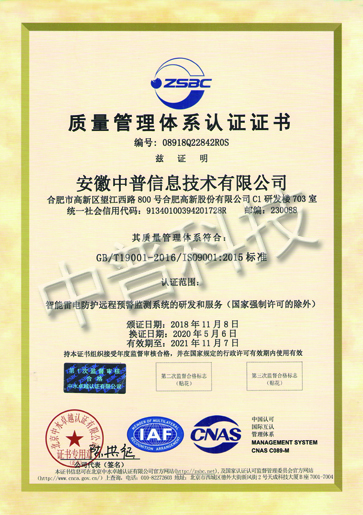 中普防雷質(zhì)量認(rèn)證體系證書